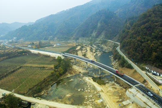 本項工程位于金寨縣燕天路上,是連接天堂寨風景區(qū)重要旅游道路。去年“6.30”特大暴雨造成漁潭村境內(nèi)山體滑坡、道路塌方、交通中斷。災情發(fā)生后,各級政府及交通主管部門十分重視,立即組織搶修,特別是負責該路管養(yǎng)的六安市公路管理局在保障通行的前提下,以最快速度組織專家評審、論證、設計、招標、實施。該項工程全長1356米,包括2座大橋、1座中橋,中標施工企業(yè)六安市交通公路實業(yè)有限公司精心組織、全力投入、克服重重困難,經(jīng)過242天的艱苦奮戰(zhàn)終于如期、保質(zhì)、安全完成施工任務。
