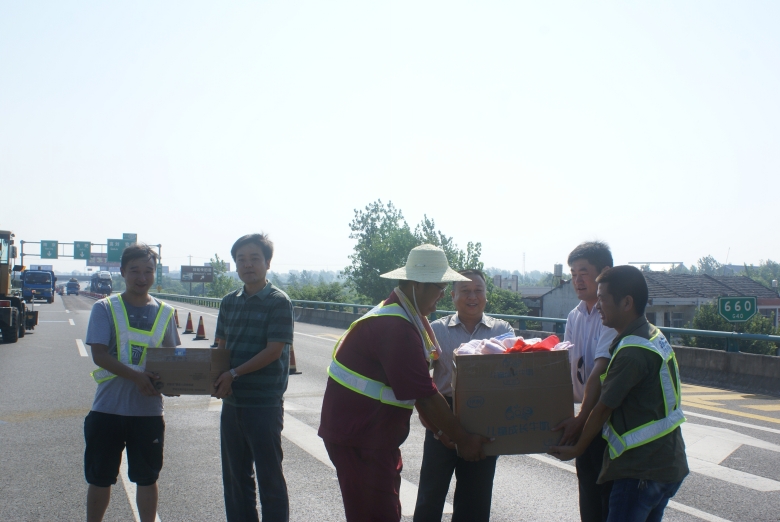 連日來,氣溫節(jié)節(jié)攀升,酷暑考驗著堅守在合六葉高速公路養(yǎng)護工程施工一線的職工。8月8日上午,公司領(lǐng)導(dǎo)及工會一行帶著毛巾、花露水、洗發(fā)液、香皂,急救藥箱及防暑降溫物品來到高速公路施工現(xiàn)場,親切慰問在烈日下仍辛勤地工作在工程施工最前線的一線職工??偨?jīng)理萬世林詢問了他們在高溫天氣下的工作、生活情況,叮囑職工在當前持續(xù)高溫的不利條件下,安全做好工作的同時,注意休息,勞逸結(jié)合,合理調(diào)整工作作息時間,采取有效的防暑措施,安全順利地度過高溫季節(jié),保質(zhì)保量的完成施工任務(wù)。