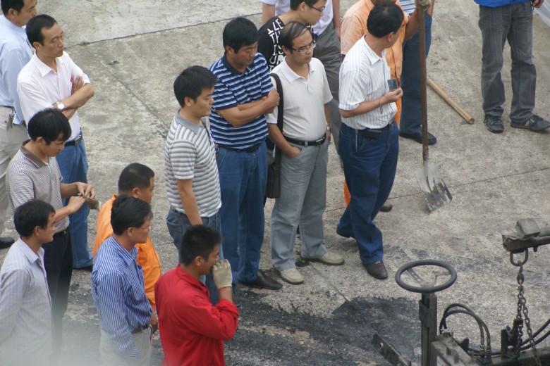 2010年9月10日上午10時,梅山路“白”加“黑”改造工程的業(yè)主,六安市建委副主任曹德林、總工周培勇攜本項目監(jiān)理單位和設(shè)計單位主要領(lǐng)導(dǎo)蒞臨我公司視察,檢查梅山路瀝青砼路面施工準備情況,并作出進一步的要求和指示,公司董事長兼總經(jīng)理萬世林同志率公司各部門全程陪同。
